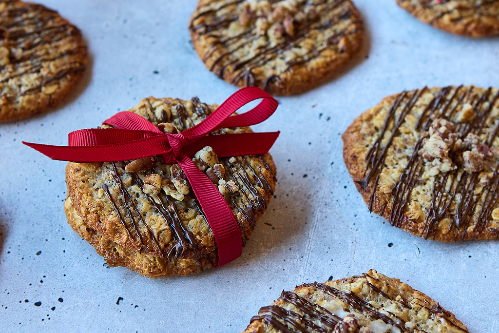 A delicate, traditional Scandinavian cookie made with oats, rye flakes, and a drizzle of bittersweet chocolate. I plan to make these part of my Valentine’s Day gift-giving treats! For the best texture, toast the pecans until fragrant, then cool completely before grinding so they stay nutty, not oily. I make them gluten-free — though you wouldn’t know it unless I told you — but you can make them with regular flour if you’d like. You might consider doubling the recipe, as they’ll disappear fast.